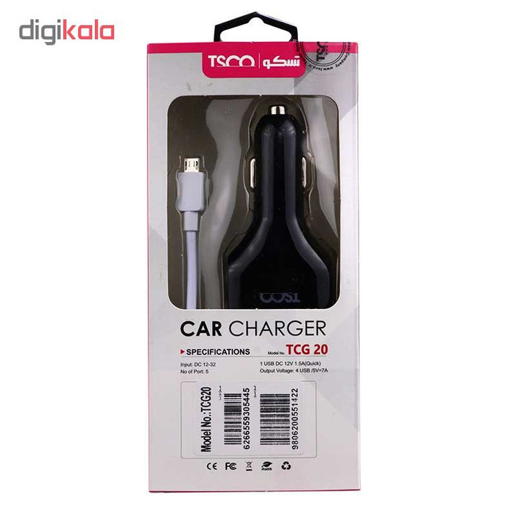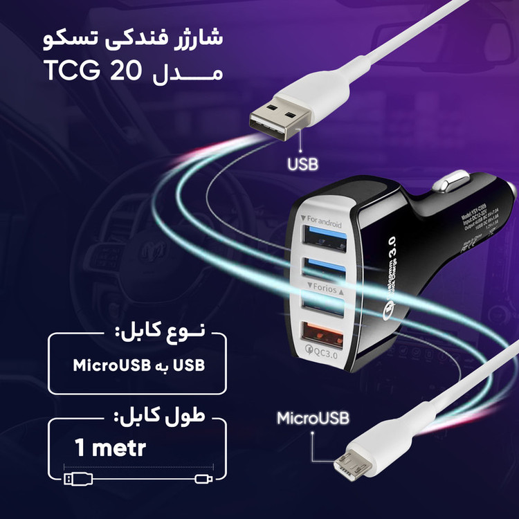 شارژر فندکی تسکو مدل TCG 20 به همراه کابل تبدیل MicroUSB