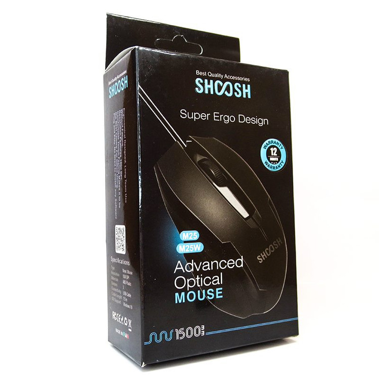 ماوس سیم دار شوش مدل M25، با طراحی زیبا و ساده خود همچینین ساختاری مناسب با ارگونومی دست میباشد. که از حسگر اپتیکال با حساسیت 1000dpi بهره مند میباشد.