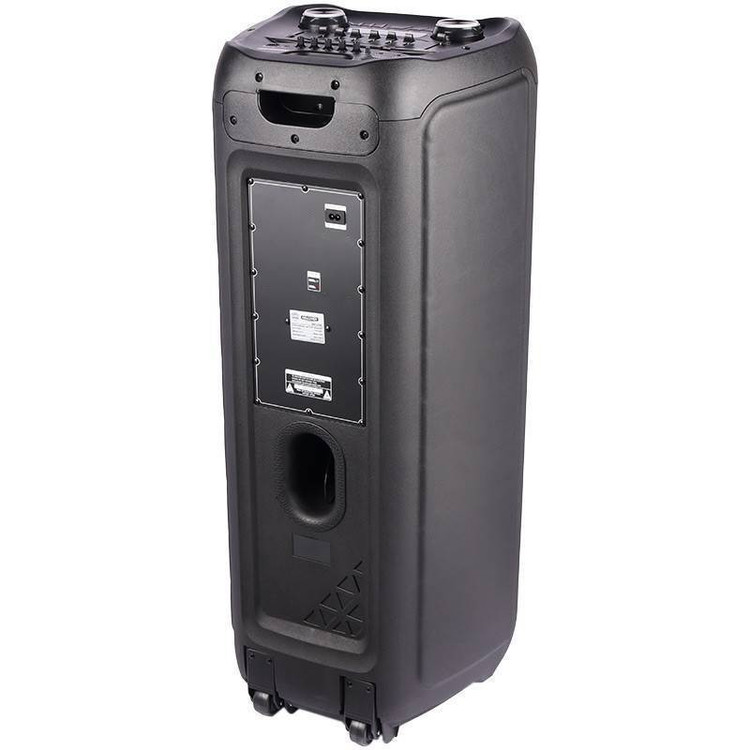 تامین انرژی توسط باتری داخلی با امکان شارژ مجدد از طریق پورت دو پین و اتصال مستقیم به برق شهری با مدت زمان شارژ شدن تقریبی 8 ساعت پشتیبانی از فناوری TWS به منظور اتصال همزمان یک اسپیکر به دو یا چند اسپیکر هم مدل دیگر، امکان پخش امواج رادیویی FM برخورداری از دو عدد ووفر با سایز قطر 12 اینچ، به همراه یک عدد میکروفون و ریموت کنترل جهت مدیریت موسیقی از راه دور پخش فایل های ذخیره شده با پشتیبانی از فلش مموری USB و کارت حافظه SD، بهره مندی از پورت ورودی میکروفون مجهز به کلیدهای فیزیکی تعبیه شده در بالای بدنه به منظور مدیریت موسیقی، تنظیم اکو و باس، نورپردازی و … جنس بدنه از نوع پلاستیک و فلز مقاوم در برابر آسیب های فیزیکی، دارای دسته و چرخ جهت حمل و نقل آسان نحوه اتصال بی سیم از طریق بلوتوث و باسیم توسط رابط جک 3.5 میلی متری صدا مجهز به نورپردازی RGB جهت ایجاد جلوه بصری زیبا در مکان های تاریک و کم نور بهره مندی از نشانگر LED جهت نمایش وضعیت شارژ و نمایشگر دیجیتال با حساسیت سیگنال به نویز 93 دسی بل و میزان امپدانس 4 اهم