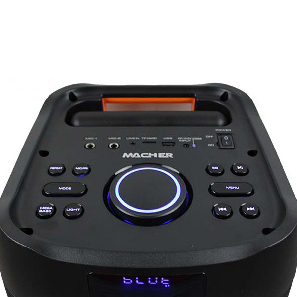 اسپیکرهای پارتی باکس مناسب برای پخش موسیقی در مجالس و فضاهای نسبتا بزرگ می باشد.اسیکر پارتی باکس MR-1600 مچر به راحتی قابل حمل می باشد.اسپیکر پارتی باکس یا چمدانی MR-1600 دارای ورودی جک 3.5 میلیمتری صدا می باشد و به کمک بلوتوث قابلیت اتصال به گوشی ، لپ تاپ و کامپیوتر را دارد.این اسپیکر داردی دو عدد ساب ووفر است و از FM Radio, TF CARD, USB. TWS, BLUETOOTH, AUX پشیتبانی می کند.یک باتری لیتیوم با ظرفیت 3600 می آمپر شدت جریان انرژی مورد نیاز این محصول را تامین می کند.رقص نور، میکروفون بی سیم و یک کنترل از راه درو از دیگر مشخصه های این اسپیکر از محصولات برند مچر میباشد.