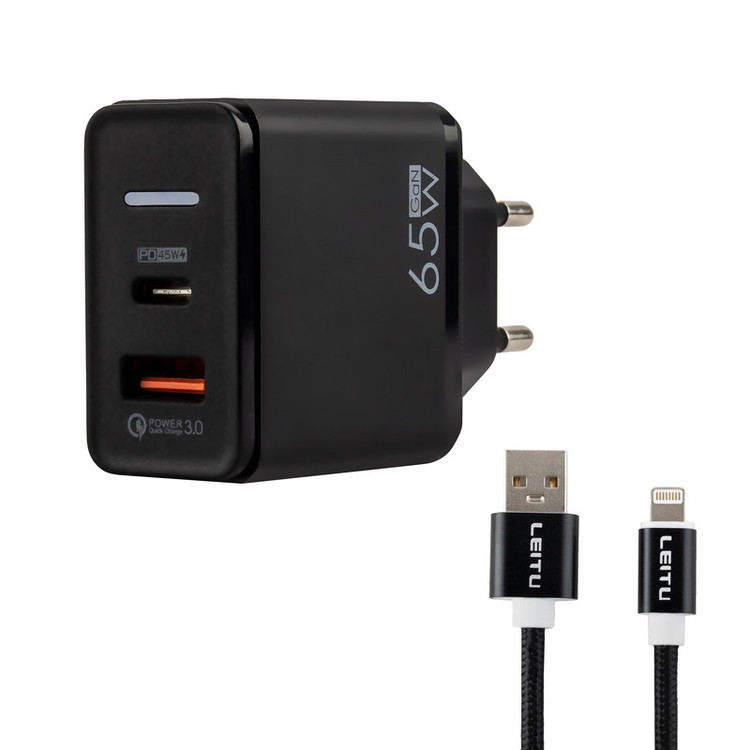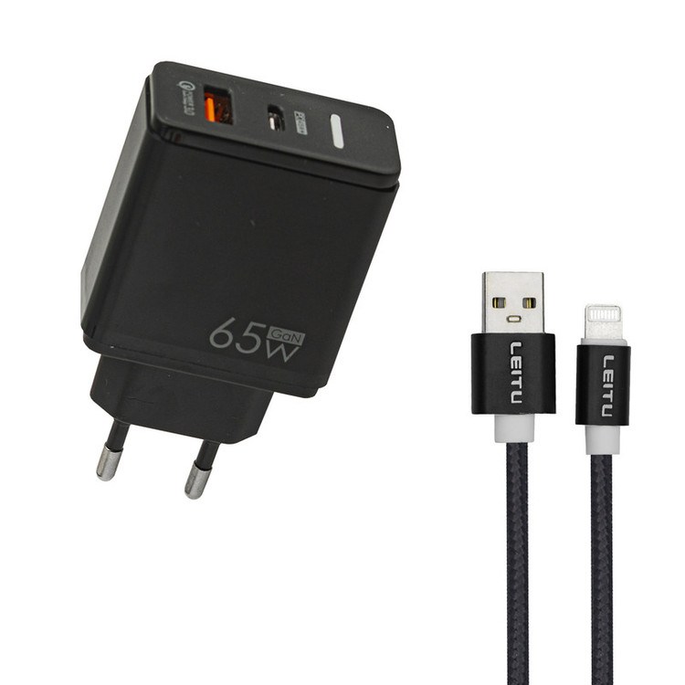 شارژر دیواری 65 وات لیتو مدل LH-21 به همراه کابل تبدیل لایتنینگ
