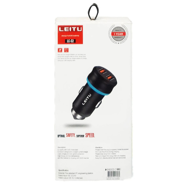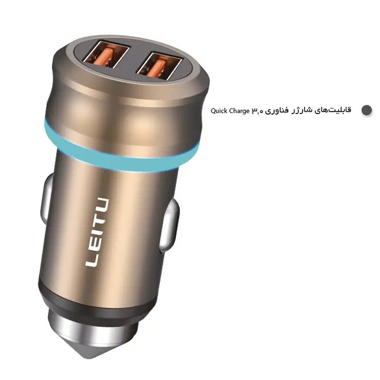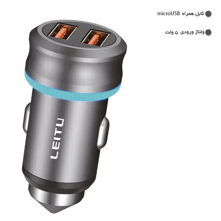 دارای دو درگاه USB - یک درگاه با شدت خروج 1.0 آمپر - یک درگاه با شدت خروج 2.4 آمپر - دارای کابل لایتنینگ - دارای کابل با محافظ کنفی - دارای قابلیت فست شارژ - دارای گواهی FC و CE اروپا - دارای چراغ ال ای دی