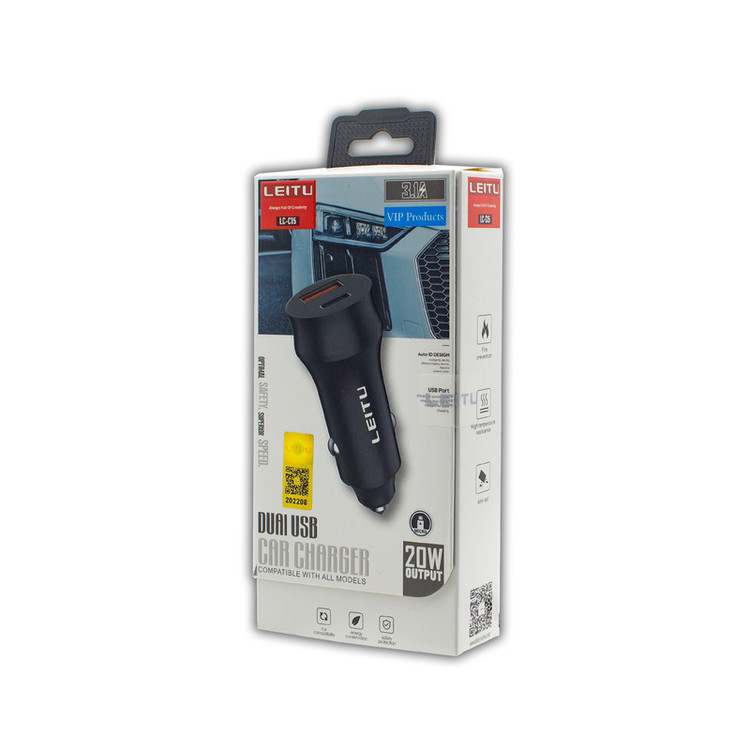 شارژر فندکی مدل LC-C15 یک شارژر با کیفیت که توسط شرکت LEITU ساخته شده است. شارژرهای فندکی یک راه رایج برای جلوگیری از تمام شدن شارژ باتری گجتهای هوشمند شما در طول روز و ساعاتی که به پریز برق دسترسی ندارید، محسوب میشوند. شما با استفاده از یک شارژر فندکی میتوانید باتری گوشیهای موبایل، دوربین دیجیتال، موزیک پلیر و دیگر دستگاههای از این قبیل خود را داخل خودرو، بدون نیاز به استفاده از پریز برق، شارژ کنید. شرکت لیتو این شارژر را با وزنی معادل 50 گرم طراحی کرده است. روی سطح این شارژر 2 درگاه خروجی USB و USB-C تعبیه شده که شدتجریان خروجی در آنها 3.1 آمپر است. توان خروجی این شارژر 20 وات بوده و میتواند ابزار دیجیتالی شما را به صورت فوق سریع شارژکنند. این محصول با توجه به مجهز بودن به استانداردهای PD, QC میتواند انواع گوشیهای موبایل و تبلت را هم بهراحتی شارژ کند. ولتاژ ورودی در این محصول 12 تا 24 ولت است. پس برای استفاده از آن کافی است شارژر را بهطور مستقیم به درگاه فندک داخل خودرو متصل کنیدبه همراه این محصول یک کابل تبدیل لایتنینگ هم ارائه شده است که طول آن برابر با 1 متر است.