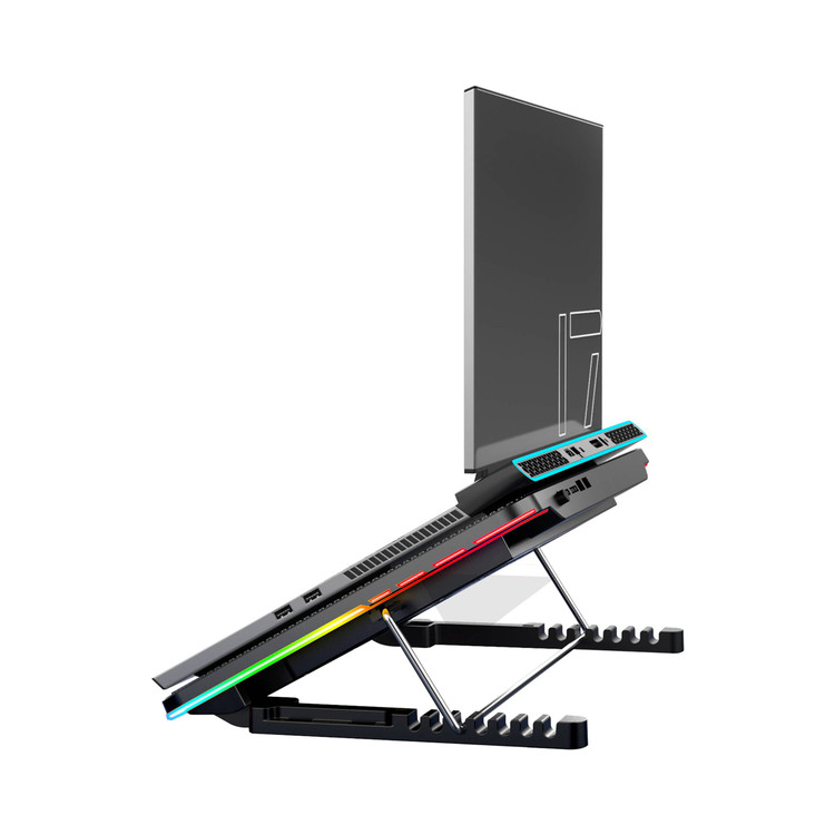 دارای دکمه on/off و تنظیم سرعت فنها, دارای رنگهای RGB, پایه نگهدارنده موبایل