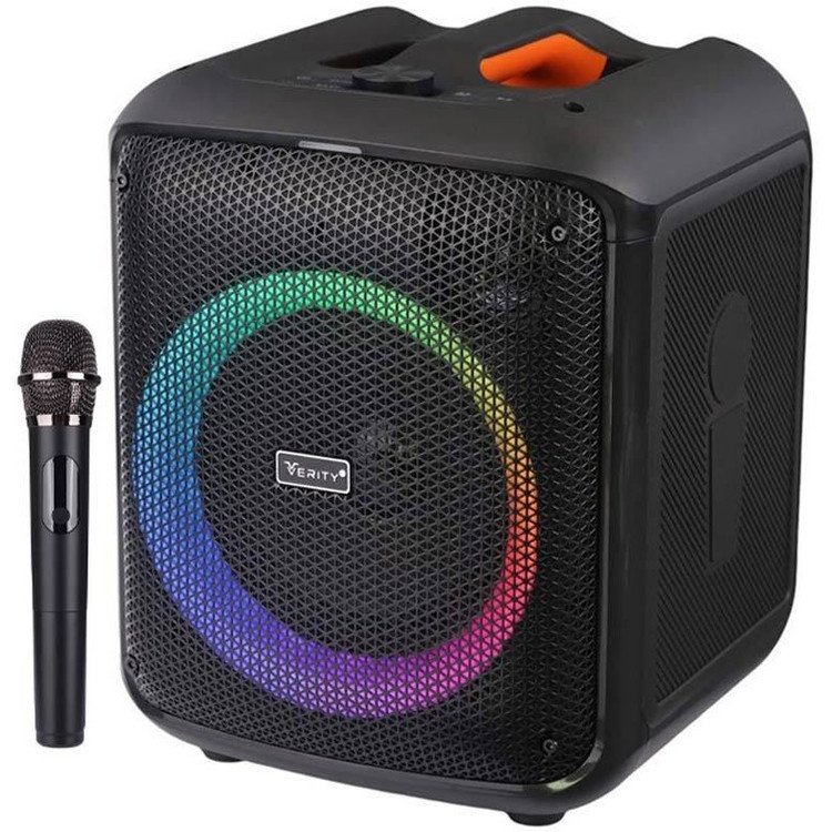 اسپیکر رم و فلش خور VERITY مدل 206 یک محصول بینظیر برای دوستداران موسیقی است که به دنبال کیفیت صدای عالی و امکانات متنوع در یک دستگاه هستند. این اسپیکر با ابعاد 270x330x270 میلیمتر و وزن 4.3 کیلوگرم (با بستهبندی)، طراحی شده تا به راحتی قابل حمل باشد و در مکانهای مختلف از جمله خانه، مهمانی، پیکنیک و فضاهای باز استفاده شود. بدنه اسپیکر V-PS206 از جنس ABS است که علاوه بر زیبایی، مقاومت بالایی در برابر ضربه و خراش دارد. با نسخه بلوتوث 5.3، این اسپیکر امکان اتصال سریع و پایدار به دستگاههای مختلف را تا فاصله 10 متر فراهم میکند. توان خروجی این اسپیکر 40 وات است و با امپدانس 4 اهم و فرکانس پاسخگویی 65Hz تا 18KHz، صدایی شفاف و قدرتمند تولید میکند که تمامی جزئیات موسیقی را با کیفیت بالا به گوش شما میرساند. این اسپیکر دارای ورودیهای متعددی از جمله USB، AUX، Micro SD و Bluetooth است که به شما امکان میدهد تا از منابع مختلف موسیقی خود را پخش کنید. باتری لیتیوم اسید 4000 میلیآمپرساعتی آن نیز برای پخش طولانی مدت موسیقی طراحی شده و با پورت شارژ تایپ سی به سرعت شارژ میشود. یکی از ویژگیهای برجسته اسپیکر VERITY مدل V-PS206، وجود نورپردازی RGB در حالت پخش است که به ایجاد فضای جذاب و رنگارنگ کمک میکند و تجربه شنیداری شما را بهبود میبخشد. این اسپیکر یک انتخاب عالی برای کسانی است که به دنبال کیفیت صدای بالا، امکانات متنوع و طراحی زیبا در یک اسپیکر قابل حمل هستند. با اسپیکر V-PS206، میتوانید در هر مکان و زمانی از موسیقی با کیفیت بالا لذت ببرید و تجربهای بینظیر را برای خود و دوستانتان ایجاد کنید.