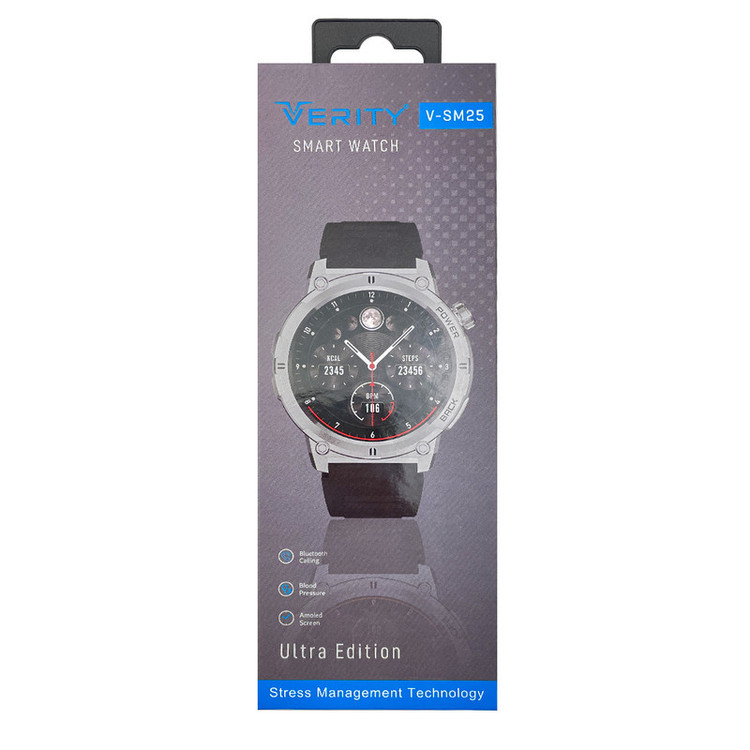 ساعت جدید وریتی مدل V-sm25A که شامل امکانات کنترل موسیقی (Music Player) ، کنترل سطح اکسیژن خون ، کنترل سطح فشار خون ، قابلیت مکالمه از طریق بلوتوث ، شمارنده ضربان قلب ، گام شمار است