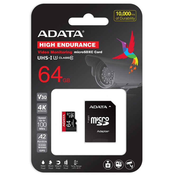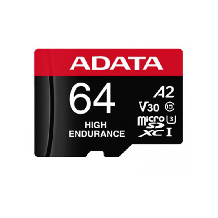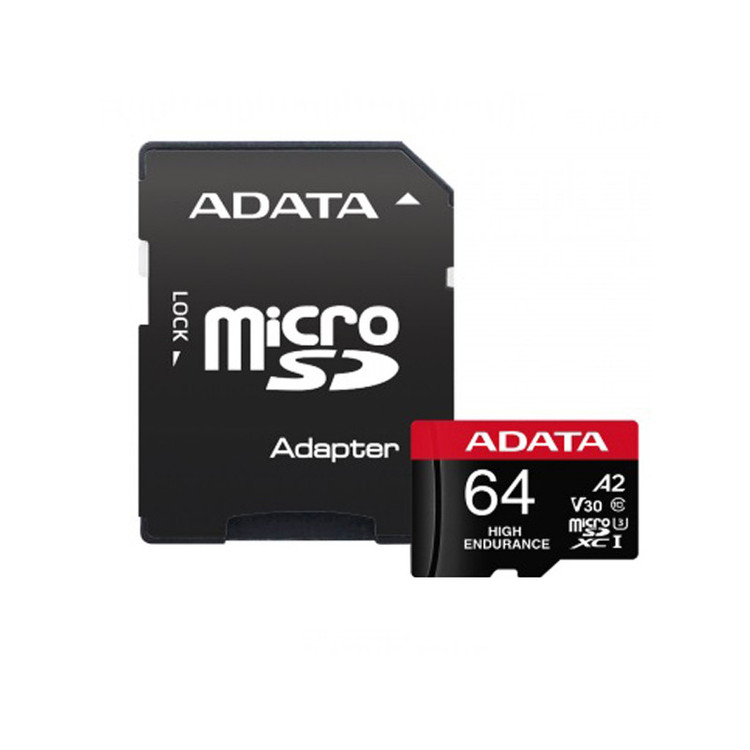 کارت حافظه microSD ای دیتا مدل HIGH ENDURANCE کلاس A2 V30 استاندارد UHS-I U3 سرعت 100MBps ظرفیت 64 گیگابایت به همراه آداپتور SD