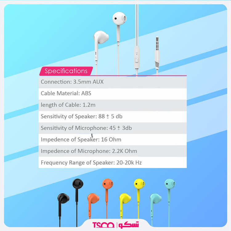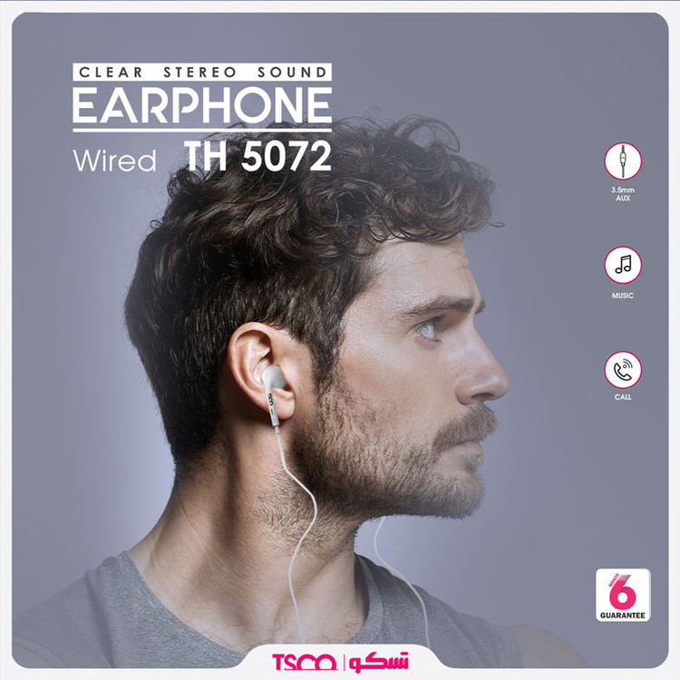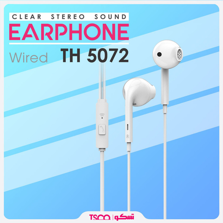 ایرفون «TH 5072» محصولی دیگر از TSCO است که جزو هدفونهای توگوشی یا ایرفون (Earphone) بهشمار میرود. به منظور استفاده از این محصول کافی است جک ایرفون 3.5 میلیمتری آن را به گوشی هوشمند خود متصل کرده و از تجربه گوش دادن به موسیقی لذت ببرید؛ با استفاده از این محصول به راحتی میتوانید به تماسهای تلفنی خود پاسخ دهید و همچنین با استفاده از طول کابل 1.2 متری این محصول، استفاده از آن آسانتر شده و میتوانید به راحتی گوشی موبایل خود را درون جیب و یا کیف خود قرار دهید.