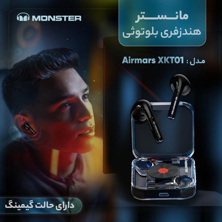 هدفون مانستر مدل Airmars XKT01، با ظاهری منحصر به فرد و بسیار زیبا و به صورت شفاف و شیشهای طراحی شده است. این ایربادز با طراحی ارگونومیک به خوبی در گوش قرار میگیرد و علاوه بر بازی، برای ورزش و کاربری عمومی هم مناسب است. این هدفون به بلوتوث نسخه 5.2 مجهز شده که علاوه بر ارائهی صدایی با کیفیت و اتصالی سریع و پایدار، به شما این امکان را میدهد تا 10 متر بتوانید از دستگاهی که به آن متصل هستید فاصله بگیرید. همچنین هدفون مذکور دارای فناوری کاهش نویز ENC است که هنگام برقراری تماس صوتی، صداهای مزاحم اطراف را حذف میکند و صدای شما را کاملا شفاف ارائه میدهد. در نظر گرفته شدن حالتهای مختف را میتوان از دیگر ویژگیهای این هدفون قلمداد کرد. با انتخاب حالت گیمینگ میتوانید از صدایی بدون تاخیر در هنگام بازی بهره ببرید و در دنیای بازی غوطهور شوید. مدت زمان شارژدهی هدفونها به تنهایی حدود چهار ساعت و با استفاده از محفظه شارژر تا 24 ساعت است. لازم به ذکر است که این هدفون با سیستم عامل اندروید و iOS و همچنین ویندوز سازگار است.