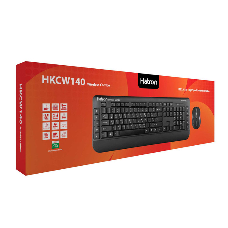 برند Hatron یکی از بهترین تولیدکنندگان موس و کیبورد و سایر لوازم جانبی در ایران است. HKCW140 محصول برند هترون، از سری کیبوردهای هترون است که کمصدا و بسیار خوشساخت است. این محصول با قابلیت اتصال بهصورت بیسیم این امکان را به شما میدهد که تا فاصله 10متری با پوشش 360 درجه در هر کجا که هستید با آن کار کنید. فرکانس 2.4گیگاهرتزی HKCW140 تأخیرها و تداخلها را از بین میبرد و شما بدون هیچ مشکلی میتوانید به کارهای خود بپردازید. دانگل USB طراحی کوچکی دارد و بهراحتی داخل موس جا میگیرد. همچنین موس و کیبورد همزمان با یک دانگل به کامپیوتر شما متصل میشوند. کیبورد این محصول انرژی موردنیاز برای کیبورد خود را از 2 عدد باتری آلکالاین سایزAAA(نیمقلمی) و ماوس از دو عدد باتری آلکالاین سایزAA(قلمی) تامین میکند. صفحهکلید HKCW140 دارای ده عدد کلید میانبر اختصاصی(فیزیکی) است که اعمالی مثل پخش/مکث، قطعکردن صدا، کموزیاد کردن حجم صدا، اینترنت، ایمیل و... را برای شما امکانپذیر میسازند. کیبورد این مجموعه با تعداد 114 کلید، طراحی کاربردی و طرز کار آسان از صفحهکلید عددی و فانکشن(Fn) بهره میبرد و دارای حروف فارسی و انگلیسی است. موس اپتیکال این مجموعه دارای حسگری بادقت 800 تا 1600 نقطه بر اینچ (DPI) است که عملکردی سریع و روان را به شما ارائه میدهد. روش نصب ساده و بدون نیاز به درایور و تنظیمات است و به شکل Plug & Play صورت میگیرد. سازگاری با سیستمعامل های ویندوز، اندروید،Mac و iOS از دیگر ویژگیهای این مجموعه است. ازجمله نقاط مثبت این مدل قابلیت Auto Power در موس و کیبورد است که سبب صرفه جویی در مصرف باتری و طول عمر آن می شود. همچنین دارای استراحتگاه جهت قرار گیری مُچ دستان شما هنگام تایپ می باشد که سبب کاهش خسگی دستها و راحتی کار میشود. این محصول برای افرادی که به یک ماوس و کیبورد بیسیم بادوام و با طراحی ساده برای استفاده در منزل یا اداره نیاز دارند، یک انتخاب بسیار مناسب و مقرونبهصرفه است.